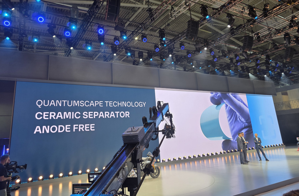 폭스바겐은 8일(현지 시간) 뮌헨 '2025 IAA 모빌리티’에서 그룹 배터리 사업부인 파워코(PowerCo), 배터리 개발 협력사인 퀀텀스케이프(QuantumScape)와 함께 QSE-5 솔리드 스테이트 셀(전고체배터리)을 탑재한 두카티 V21L 순수 전기 모터싸이클을 공개하고 전고체배터리 라이브 시연을 진행했다.